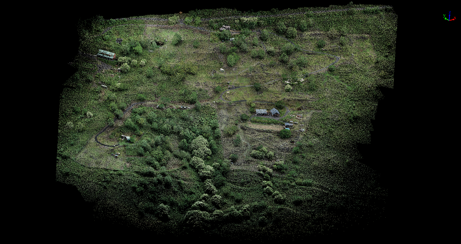While photogrammetry stitches together 2D photos to create 3D models, it often struggles with dense vegetation. Aerial LiDAR shoots laser pulses that penetrate through canopy gaps to hit the true bare earth. This allows us to generate highly accurate topographic maps and structural models regardless of ground cover.